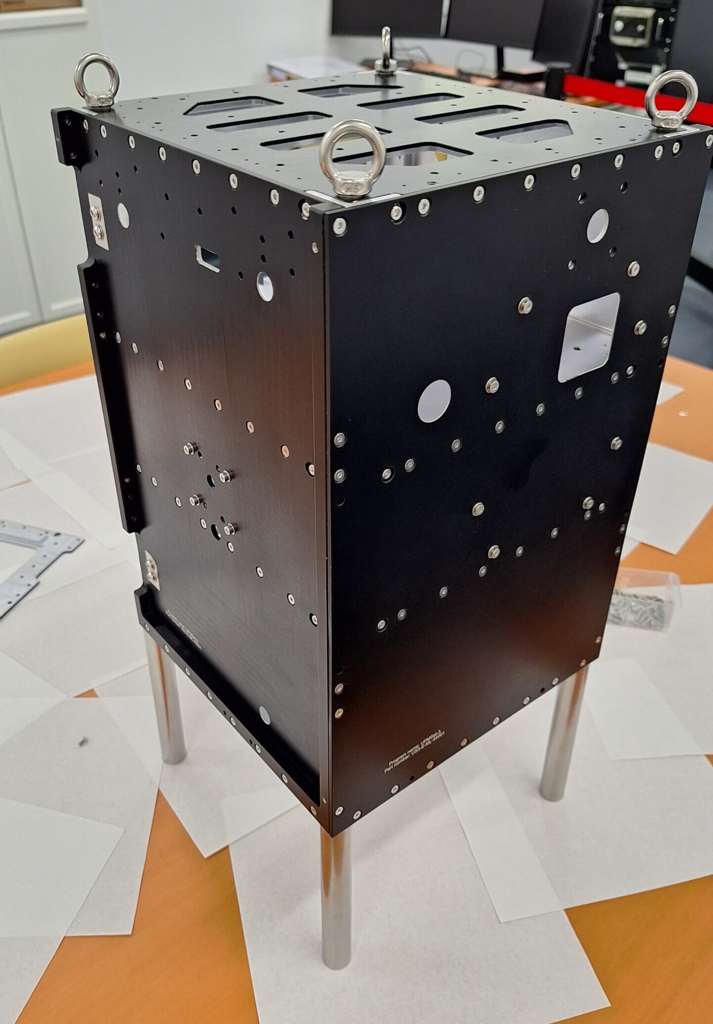 Para validar y perfeccionar este diseño, se han llevado a cabo ensayos sobre modelos de ingeniería, orientados a correlacionar las uniones mecánicas del modelo térmico con los datos experimentales obtenidos. Estos ensayos han sido fundamentales para ajustar los parámetros críticos del diseño y asegurar su correcto desempeño en el entorno espacial.
