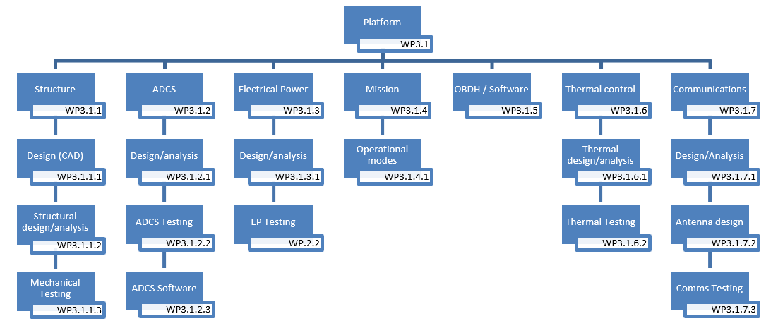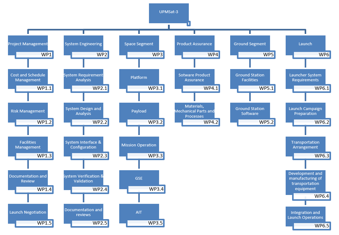 De este modo, el equipo responsable del desarrollo del satélite UPMSat-3 está dirigido por un gestor que rinde cuentas ante los organismos e instituciones patrocinadores y un conjunto de equipos de trabajo (articulados en torno a los paquetes de trabajo definidos en el proyecto) coordinados por un ingeniero de sistemas. Los equipos de trabajo, formados por uno, dos o tres profesores y varios alumnos, se han encargado de llevar a cabo las distintas tareas descritas en los paquetes de trabajo, siendo su composición flexible, habida cuenta de la movilidad y la disponibilidad del personal en un entorno universitario y de las necesidades específicas del proyecto en las diversas etapas de su ejecución.