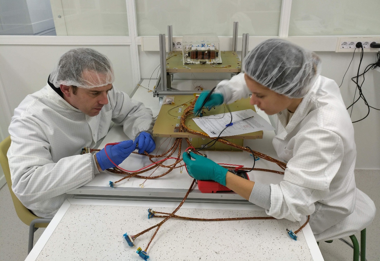 estuvo a cargo de la Prof. Elena Roibás, el Técnico de Laboratorio Rafael García y el Prof. Javier Pérez. Otros profesores como el Prof. Ignacio Torralbo, el Prof. Javier Piqueras y el Prof. Santiago Pindado colaboraron en las fases finales de instalación del cableado en el UPMSat-2, ya que esta es una tarea compleja y que requiere la colaboración de al menos dos personas. Se ha de decir también que el cableado del UPMSat-2 ha integrado a alumnos del MUSE en distintas fases de su diseño y desarrollo. Se puede mencionar por ejemplo el trabajo recogido en los Casos de Estudio de Dña. María Amparo González de la Aleja Cabana y D. Juan Bermejo.